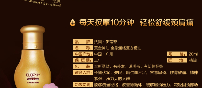 • 單品: 黃金神油全身通絡(luò)復(fù)方精油