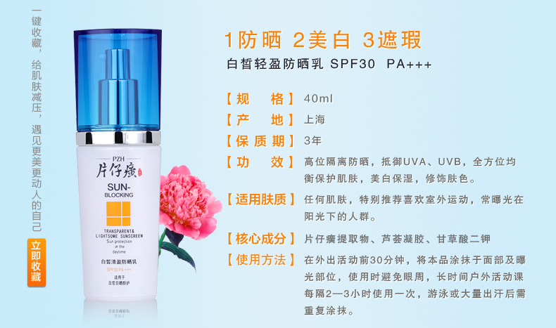 • 產(chǎn)品名稱:PZH/片仔癀 白皙清盈防曬...