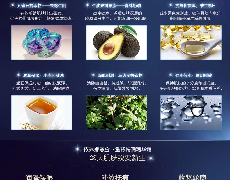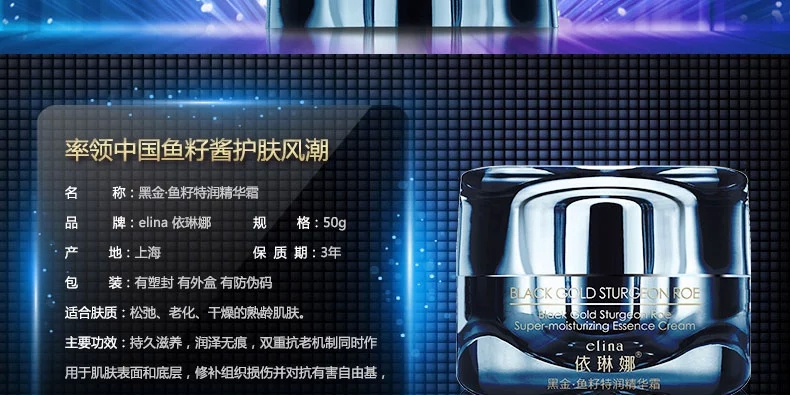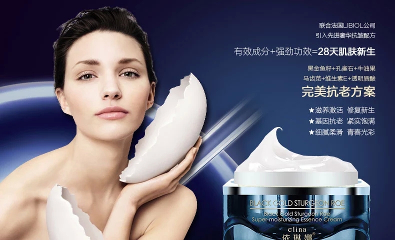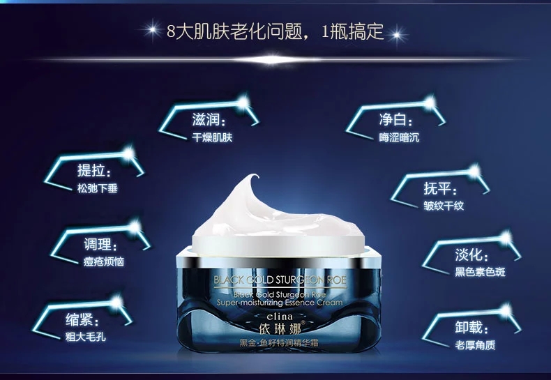 • 產(chǎn)品名稱:依琳娜 黑金魚籽特潤(rùn)精華霜