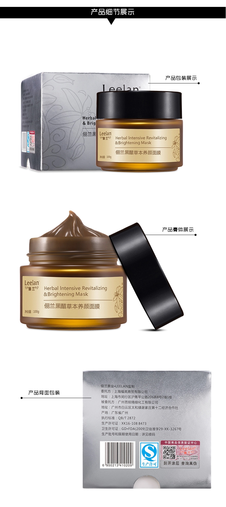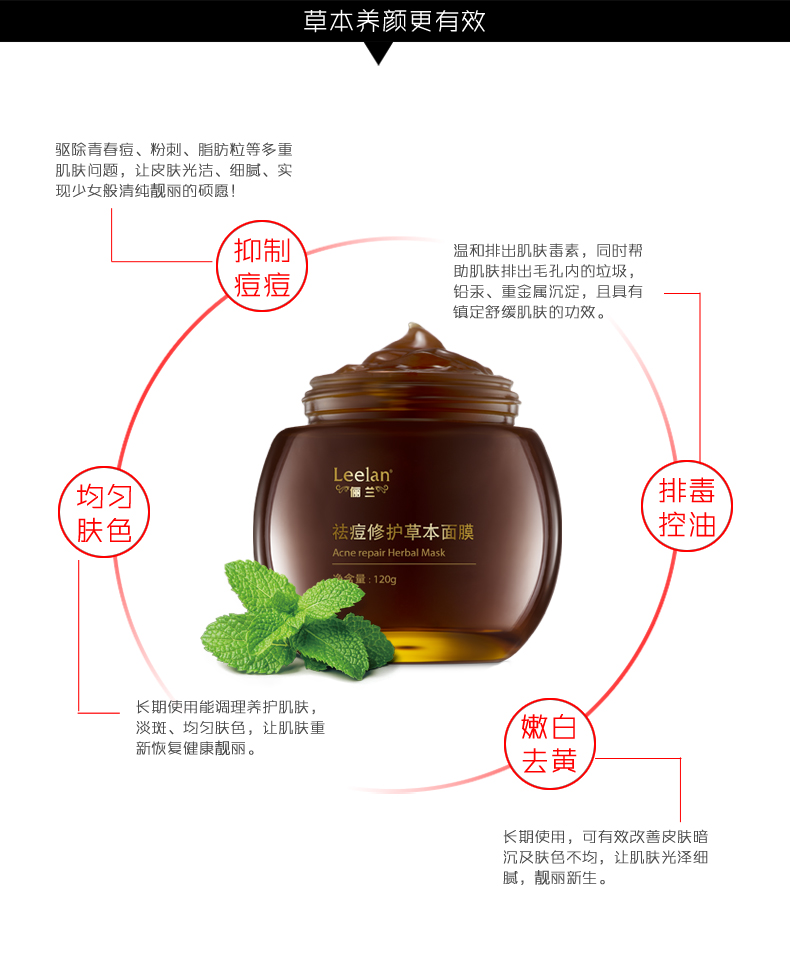 • 面部護(hù)理套裝單品: 黑醋草本養(yǎng)顏面膜+祛痘修護(hù)草本面膜
