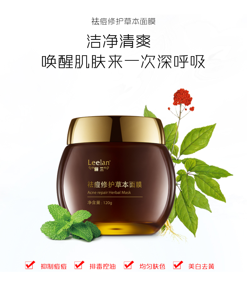 leelan黑醋草本養(yǎng)顏面膜+祛痘修護(hù)草本面膜嫩白提亮膚色祛痘套裝